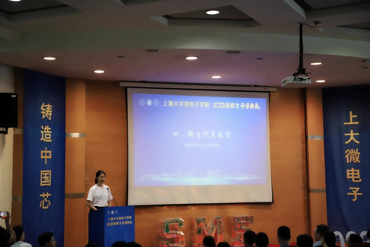 研究生新生代表浦冰玮是微电子学院的第一届本科生,她亲眼见证了学院的飞速发展以及学院搭建一流平台、培养一流人才、创造一流成果的决心与魄力,这一切都促使她选择在学院深造,和一群最富梦想的青年,再次扬帆启航。在接下来的学习中,她希望和同学们一起,起“拼搏奋斗”之笔,勾画“奋进”本色;泼“凝心聚力”之墨,晕染“团结”底色;挥“理想信念”之毫,绘就“担当”亮色。