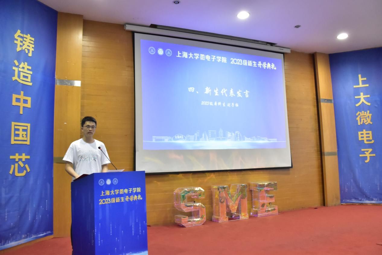 本科生新生代表刘子拓在发言中表示,超大规模集成电路是秩序、逻辑和数学之美的集大成者。选择一门时代所需的专业和成为时代先锋的使命感,是他决心从事集成电路工作的一大原因。在这个机遇与挑战并存的时代,他希望和大家一起,知行合一、追求卓越,利用好在微电子学院学到的知识,成为全面发展的卓越创新人才,担当起民族复兴大任。