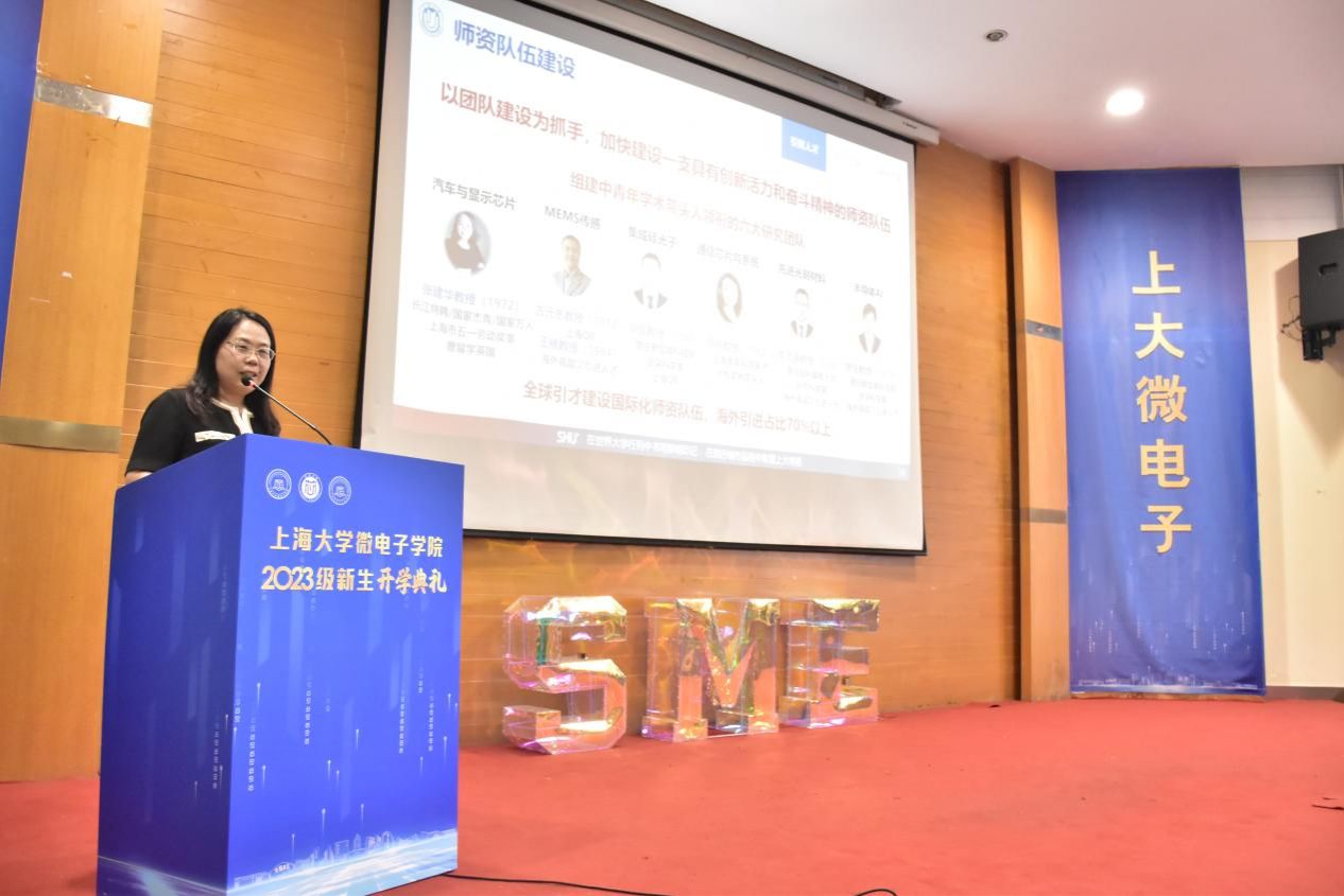 溯微书院院长、微电子学院执行院长张建华老师代表学院热烈欢迎2023级全体新生的到来。张建华老师从基本概况、建设进展、“十四五”规划三个方面详细介绍学院情况。