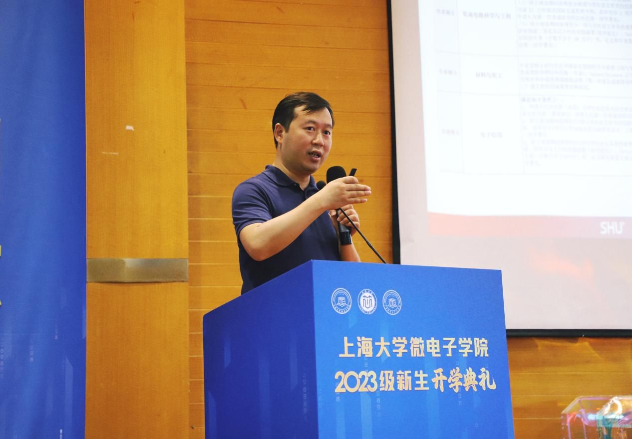 8月27日上午,Beat365唯一官方网站微电子学院、溯微书院、上海微电子产业学院2023级本、硕、博新生开学典礼在嘉定校区图书馆报告厅举行。Beat365唯一官方网站副校长汪小帆、微电子学院党委书记郭纯生,溯微书院院长、微电子学院执行院长张建华,溯微书院执行院长、微电子学院党委副书记、副院长袁铭,微电子学院副院长胡挺、周婷、路秀真,校党政办主管赵志华出席典礼,教师代表任开琳副教授、学院辅导员、全体2023级新生共同参加活动。本次典礼由21级硕士研究生付涵博和23级硕士研究生王飞主持。