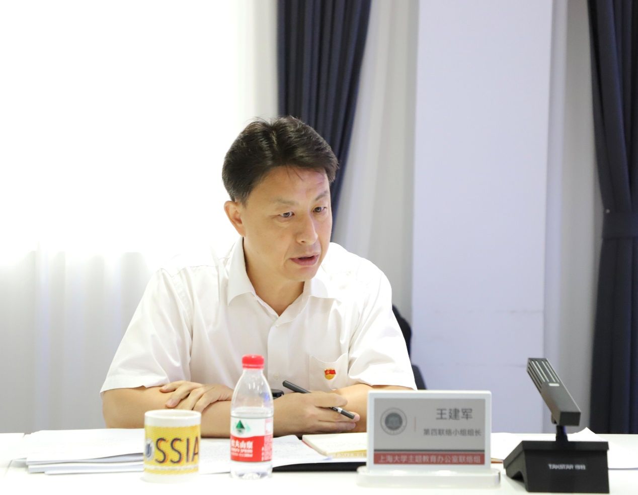 王建军对学院开展主题教育情况进行了点评。他指出,微电子学院党委主题教育过程中,坚持为党育人、为国育才,聚焦国家战略需求和集成电路产业需要,厚植爱国情怀,努力将主题教育成效转化为全力培养集成电路领域卓越工程师及解决集成电路卡脖子关键技术高端人才的强大动力,特别是学院凝练主题教育案例,主题教育成效在组织人事报、学习强国平台上进行专题报道,具有引领示范作用。他表示,此次专题民主生活开得很好、很有成效,班子敞开心扉,交流了思想、检视了问题、明确了方向,整个会议形成了“团结-批评-团结”的良好氛围,学院党委也通过这次会议统一了思想、增进了团结、促进了工作。同时,王建军提出了坚持不懈强化理论武装、推动研以致用、抓实整改整治、推动高质量发展四个方面的建议,希望学院持续推动学习贯彻习近平新时代中国特色社会主义思想往深里走、往实里走、往心里走,推动微电子学院高水平建设。