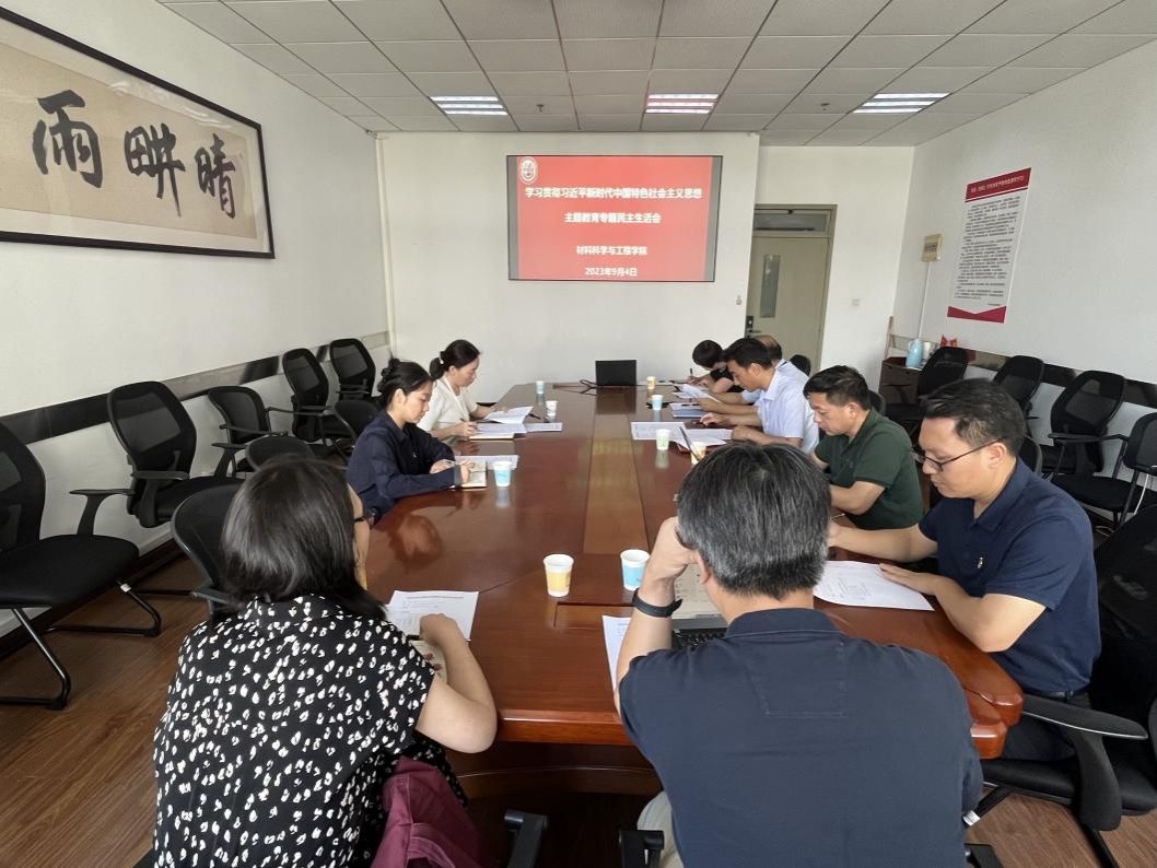 9月4日下午,材料科学与工程学院党委在材料B楼526会议室举行学习贯彻习近平新时代中国特色社会主义思想主题教育专题民主生活会。校党委主题教育联络组副组长崔海霞、联络员吴晓君到会指导,学院领导班子成员参加会议,会议由学院党委书记黄健主持。