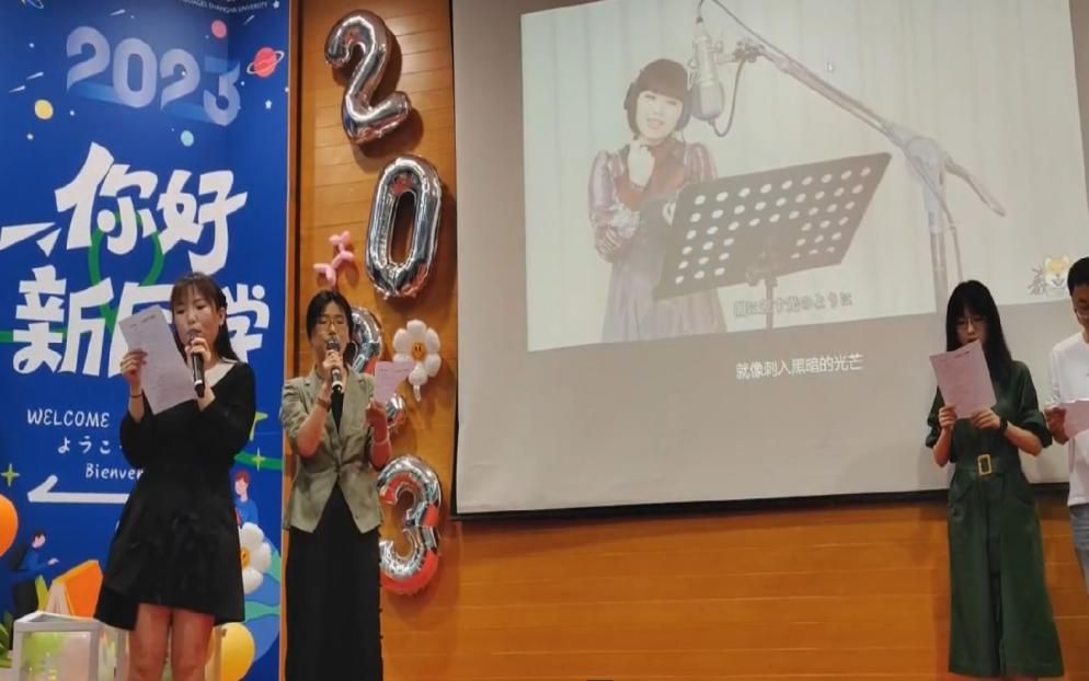 日语系文雪、张晓娜、赵莹波、苏鹰、张永娇、张哲瑄、李月明等老师共同合唱日语版《孤勇者》,祝愿大家在未来的道路上一往无前。