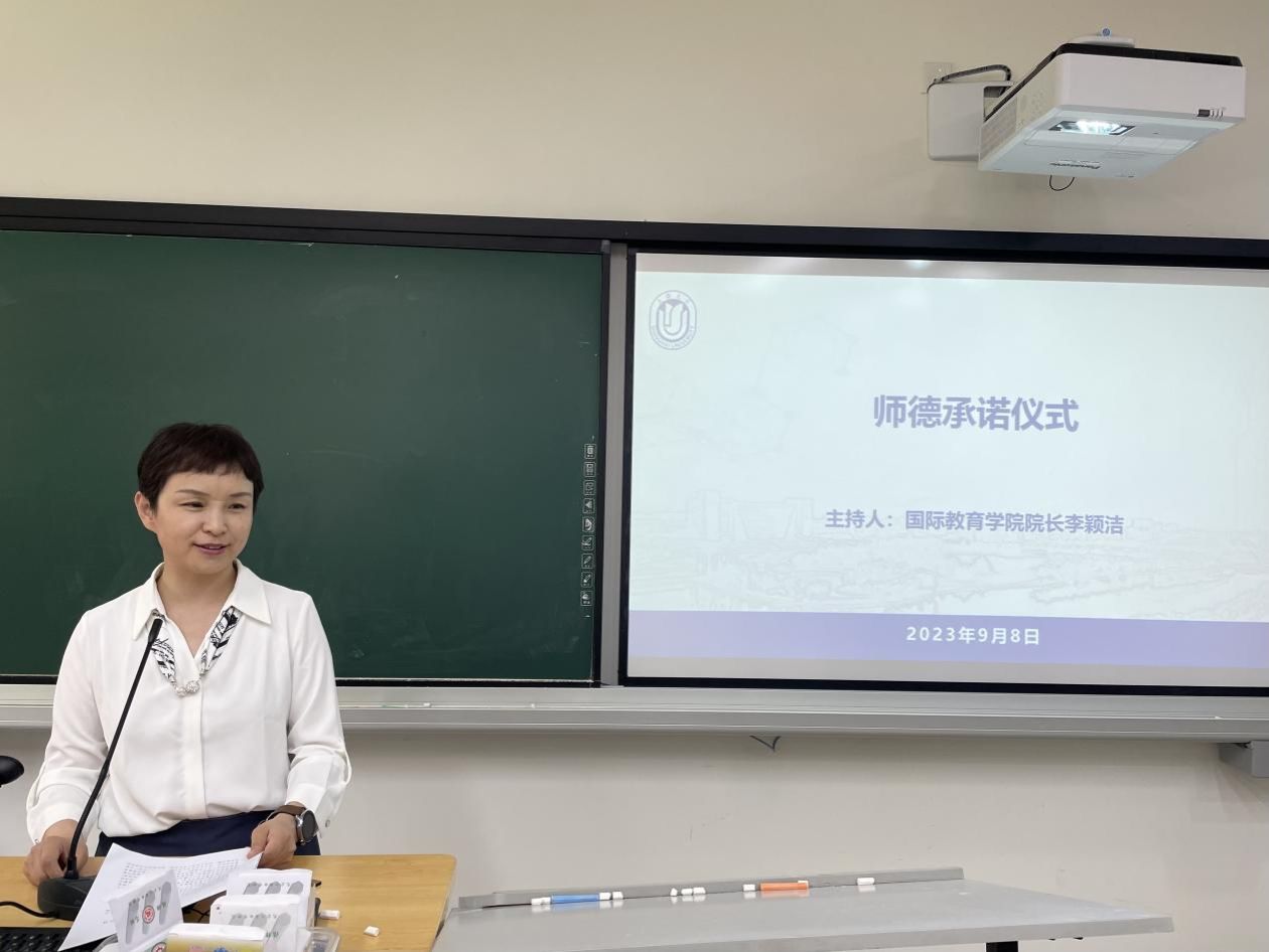 李颖洁院长主持了师德师风承诺仪式。李院长带领与会老师共同学习2023年Beat365唯一官方网站师德警示教育资料,强调作为教师应该“知准则、守底线、强师德、正师风”,做到“严于律己,清廉从教”。全体教师现场签署了《Beat365唯一官方网站国际教育学院师德师风承诺书》。