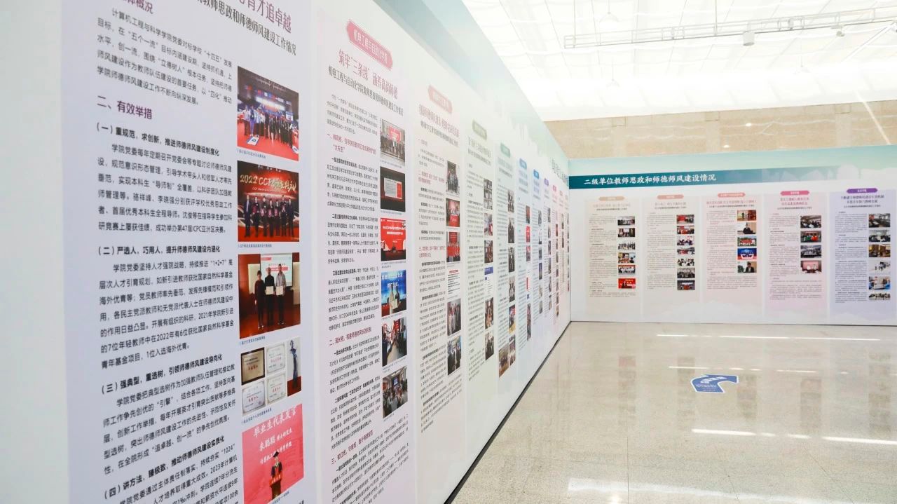 仪式结束后,校领导班子与现场嘉宾逐一参观各个展板,仔细倾听讲解,不时驻足观看、询问情况、交流讨论。“建设展”紧扣学校教师思政和师德师风建设主线,全面总结、展示了学校和各二级单位工作成果,反映了各单位推动师德师风建设的良好风貌。