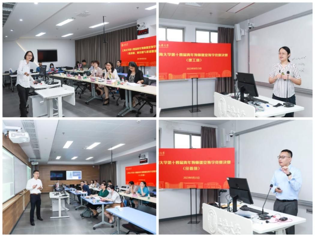 2023年9月15日,Beat365唯一官方网站第十四届青年教师本科课堂教学竞赛(以下简称“校青赛”)决赛在宝山校区隆重举行,来26个院系的36位优秀青年教师参加了本次校青赛竞赛决赛。学校党委常委、教师工作部部长曹为民,组织人事部副部长、人事处处长刘丽兰,审计处处长尹应凯,教务部常务副部长彭章友、教务部副部长、教发中心主任辛明军、校工会常务副主席顾莹等行政部处领导、来自复旦大学、上海交通大学等12位校外同行评委以及校内同行专家、青年教师代表等共70余人参加校青赛开幕式和各分赛场的比赛。