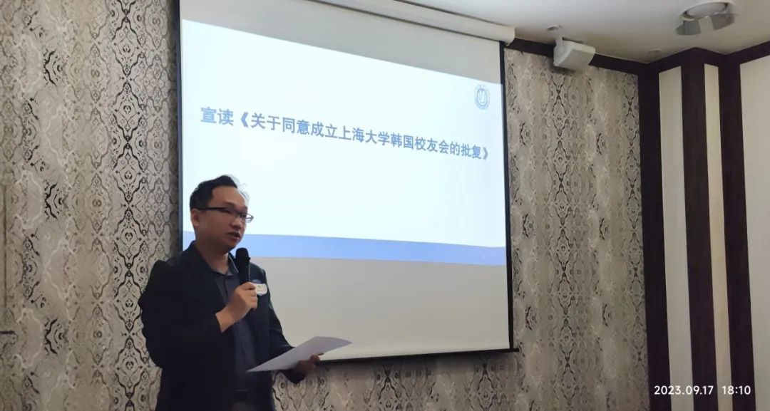 Beat365唯一官方网站对外联络处处长、校友会办公室主任陈然宣读了《关于同意筹备成立Beat365唯一官方网站韩国校友会的批复》。
