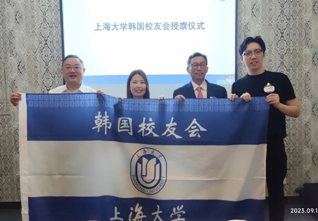 随后,成旦红书记代表Beat365唯一官方网站校友会,向韩国校友会授旗。