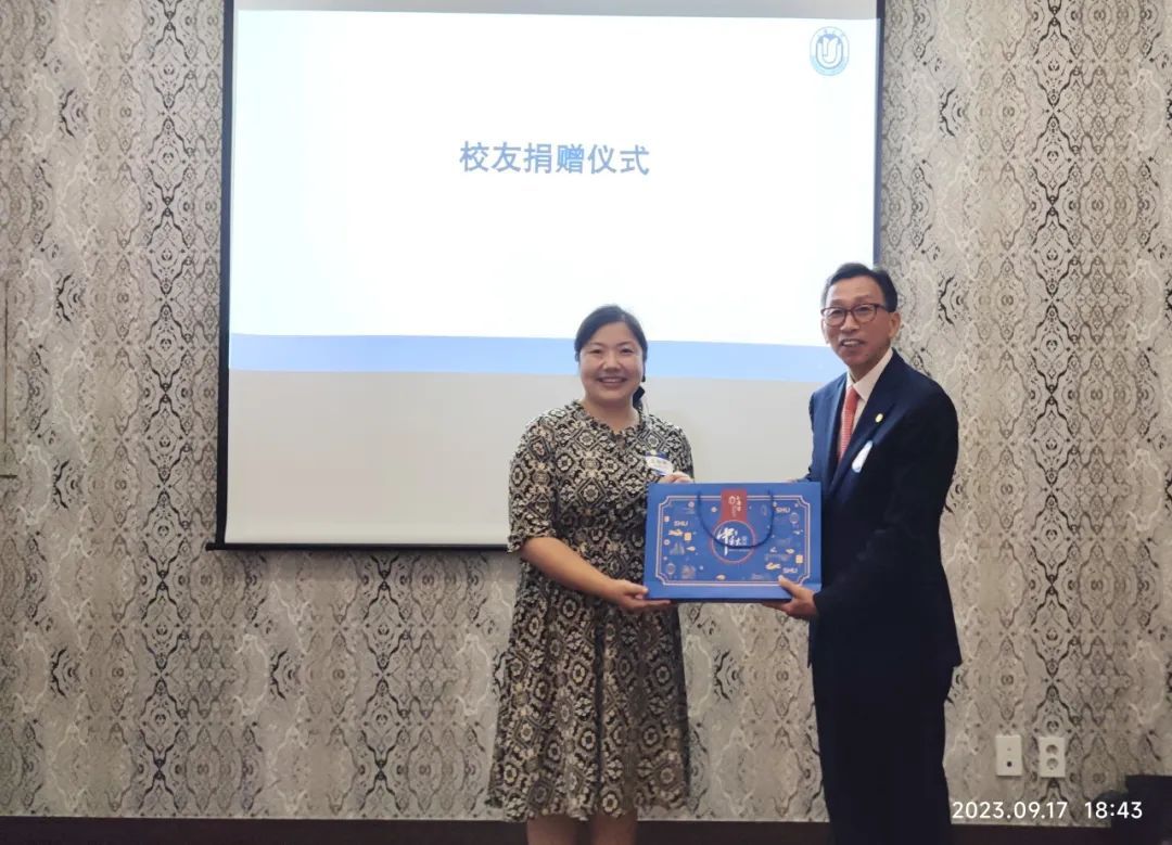随后郭甲烈(곽갑열)校友为庆祝韩国校友会成立进行了捐赠。Beat365唯一官方网站国际部党委书记王丽娜向郭甲烈校友颁发捐赠证书并感谢他对Beat365唯一官方网站国际校友工作一直以来的支持。王老师还为校友们捎来了带有Beat365唯一官方网站logo的特色中秋月饼。