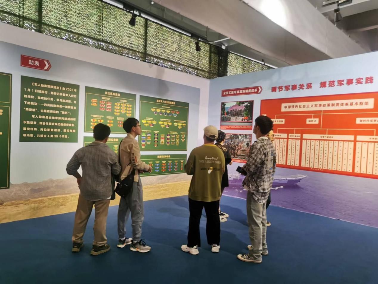 参观完展览后,同学们感触颇深。来自22级微电子学与固体电子学专业的曾昱同学说:“最让我印象深刻的是一枚枚象征着荣誉的勋章,我觉得作为一名集成电路领域的研究生,应当增强国防意识,全局意识,要在自己的学习工作中严格要求自己,不断精进自己的专业能力、科研水平,为实现民族复兴做出一份自己的贡献。”来自22级电子信息专业的谢丹妮同学说:“展馆向我们展示了上海市全面贯彻落实习近平强军思想,服务国防和军队现代化建设,深化全民国防教育的成果。我们仔细阅读了展出的文字和图片,同时也体验了科普互动。这次参观增强了大家爱党爱国爱社会主义的深厚情感、居安思危的忧患意识以及强国强军的责任担当。”