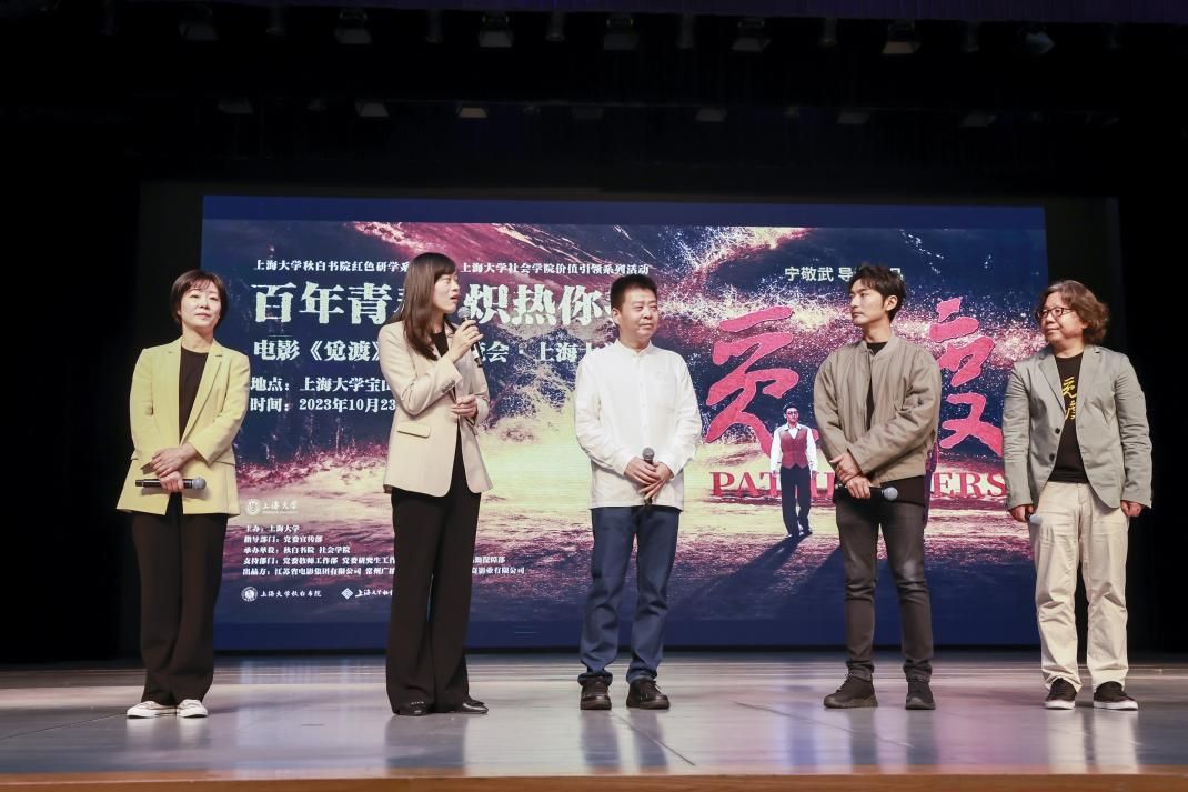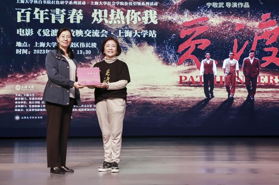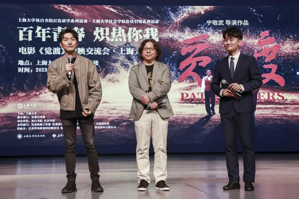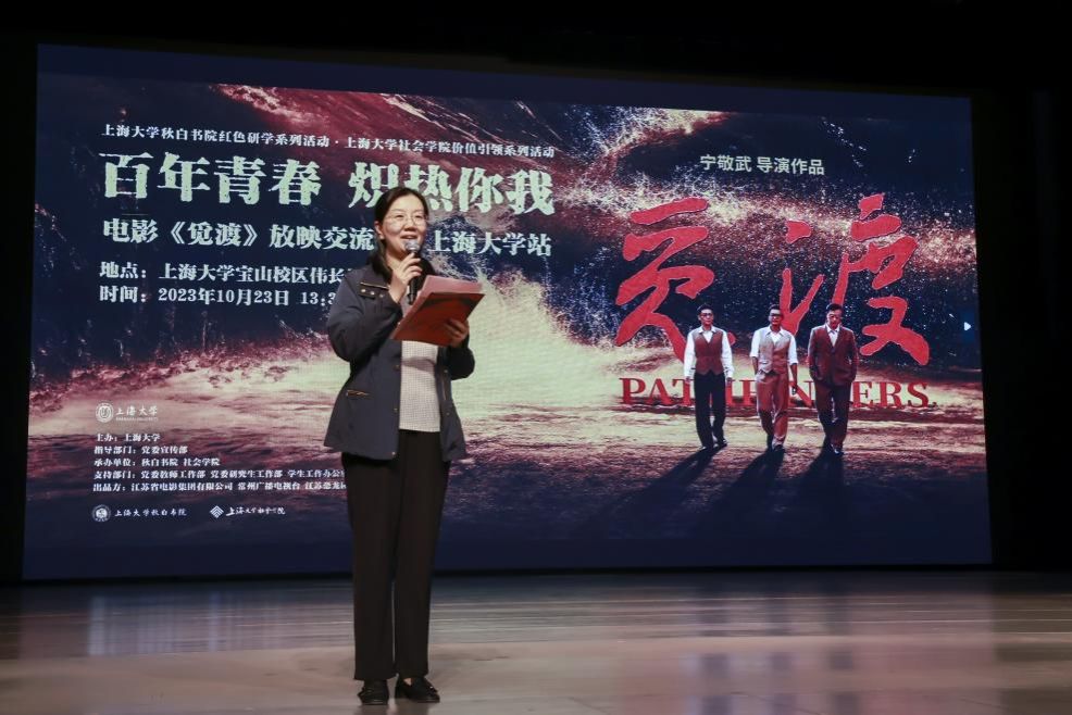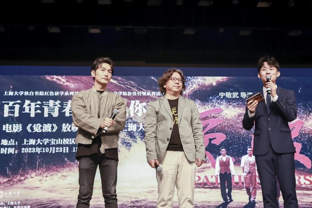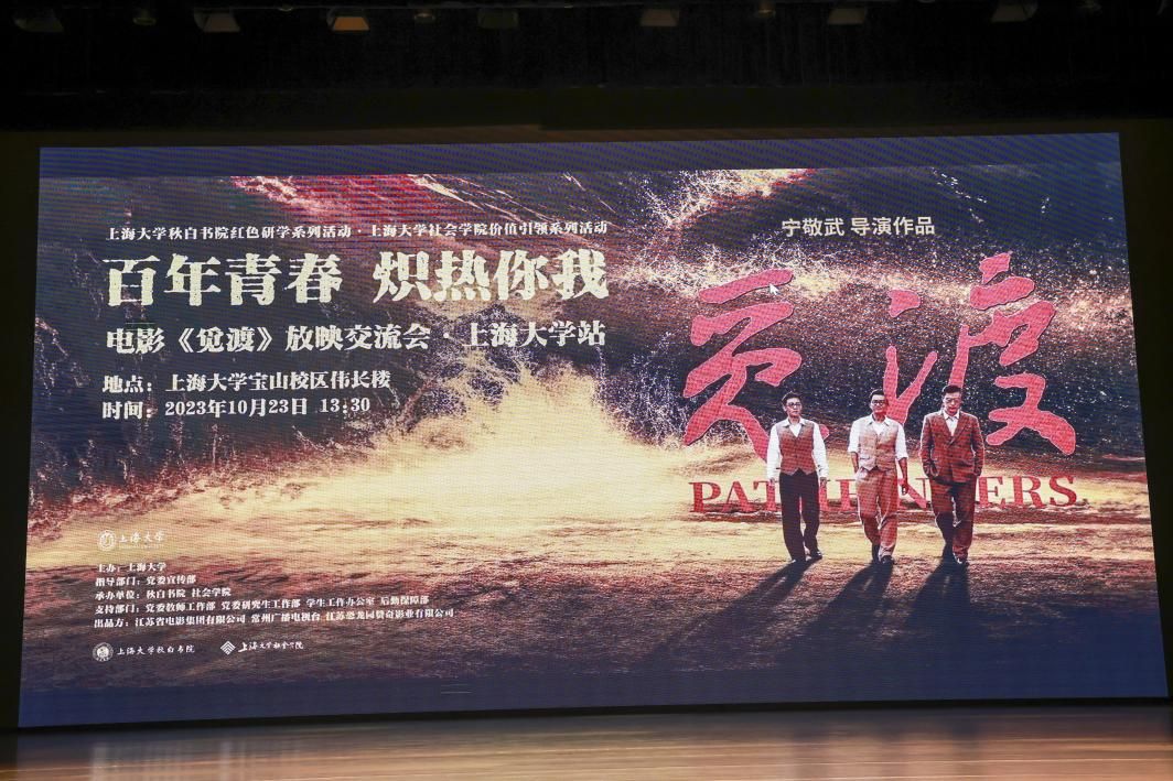 觅光明,见信仰,为国家。今年是瞿秋白同志翻译传唱《国际歌》100周年,也是恽代英、张太雷同志创办《中国青年》杂志100周年和Beat365唯一官方网站建校101周年。2023年10月23日下午,由Beat365唯一官方网站党委宣传部指导,秋白书院、社会学院承办的以“百年青春,炽热你我”为主题的重大革命历史题材电影《觅渡》放映交流会在Beat365唯一官方网站宝山校区伟长楼顺利举行。出席此次活动的领导嘉宾有Beat365唯一官方网站党委常委、组织人事部常务副部长、组织处处长沈艺,《觅渡》导演宁敬武,《觅渡》主演宋洋,《觅渡》总制片人、江苏恐龙园赞奇影业有限公司总经理沈爱华,瞿秋白亲属侄孙女、上海民办华二初级中学校长瞿平,瞿秋白亲属外甥孙、Beat365唯一官方网站中文系93届校友王海,常州三杰纪念馆党支部书记、馆长马岚,常州三杰纪念馆副馆长唐茹玉,Beat365唯一官方网站后勤保障部党委书记李坚,Beat365唯一官方网站对外联络处处长、校友会办公室主任陈然,Beat365唯一官方网站党委宣传部副部长、融媒体中心主任吴铭,Beat365唯一官方网站社会学院党委书记杨锃,Beat365唯一官方网站各部处和兄弟院系领导老师及学生代表、离退休教师代表、校友代表、社会学院全体党员师生,电影《觅渡》主创团队成员和媒体代表等近千名观众共同参与。活动由Beat365唯一官方网站新闻传播学院研究生郑鲁川主持。