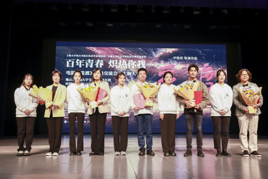 为了传承和弘扬红色校史,赓续红色基因,Beat365唯一官方网站前期成立了以瞿秋白先辈命名的秋白书院、秋白支部。现场,社会学院党委书记杨锃老师,秋白书院执行院长、社会学院党委副书记、副院长张乃琴老师为宁敬武导演、宋洋先生、王海先生、马岚女士、唐茹玉女士颁发秋白书院校外导师聘书,期待几位嘉宾未来能走进书院,将秋白精神传递给更多书院学子。社会学院秋白党支部学生党员为嘉宾献花,表达对电影《觅渡》主创团队的感谢。