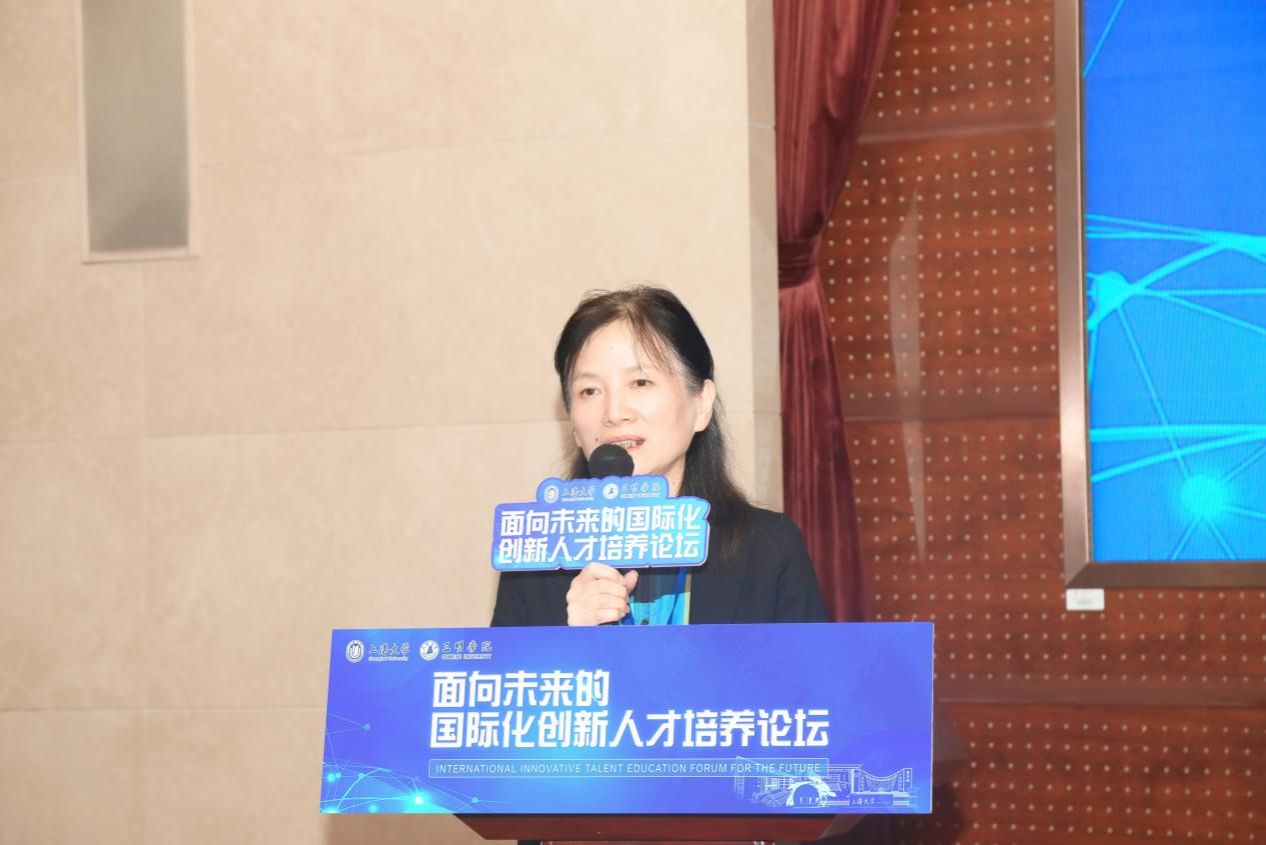 上海交通大学副教务长吴静怡从“国际化人才培养的融合创新”这一主题出发,深入分享了上海交通大学的国际化战略以及国际化培养特色。吴静怡教授提到,上海交通大学的国际化战略旨在培养具有全球视野的一流人才,以“中国特色、世界一流、立足中国、融通世界、协同开放、多元包容”为愿景,率先开启国际化人才培养的融合创新之路,构建了多元化的国际化人才培养特区,打造了具有交大特色的培养模式。