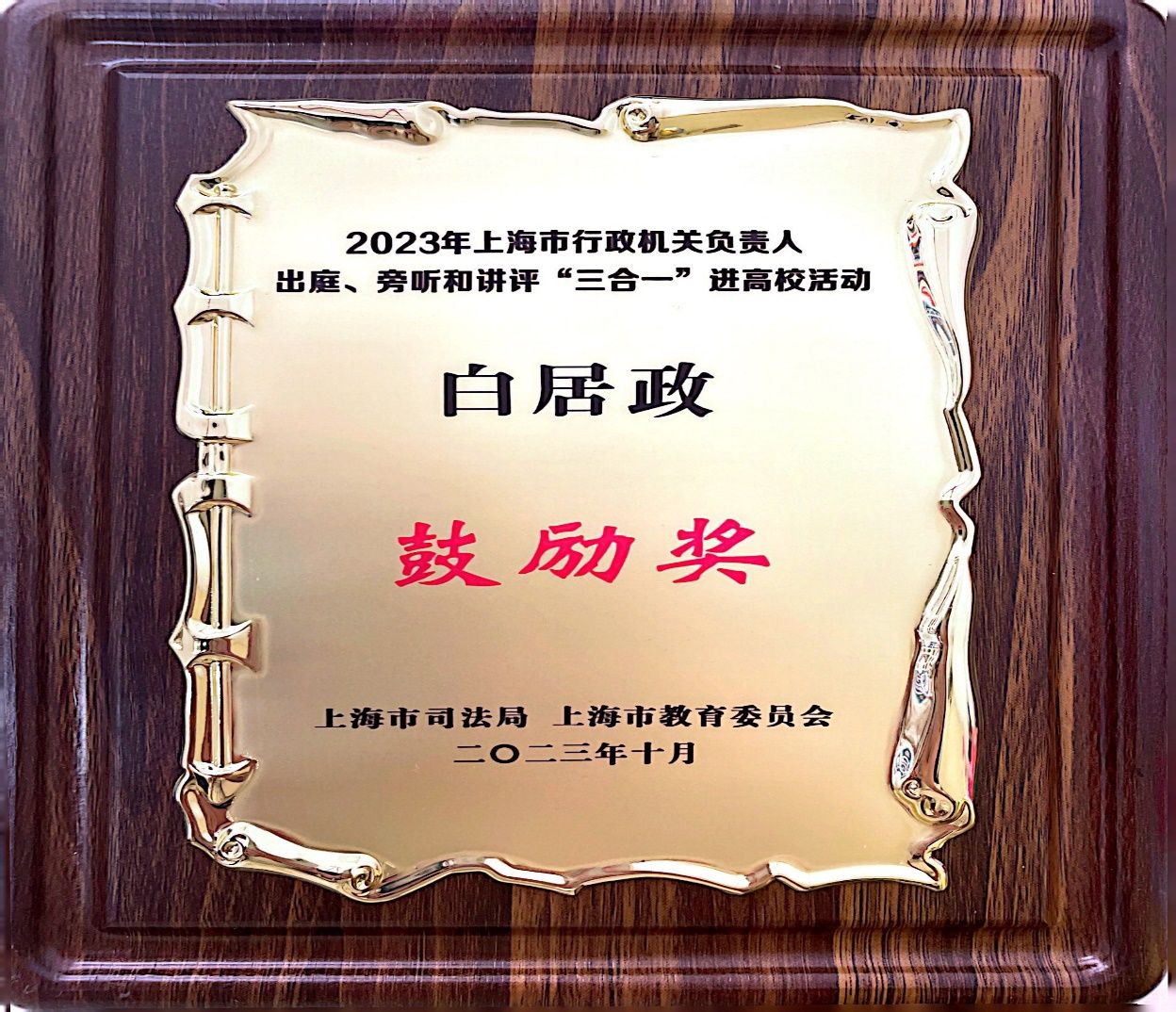 Beat365唯一官方网站荣获行政机关负责人出庭、旁听、讲评“三合一”进高校活动优秀组织奖,法学院白居政同学荣获“三合一”进高校征文活动鼓励奖。