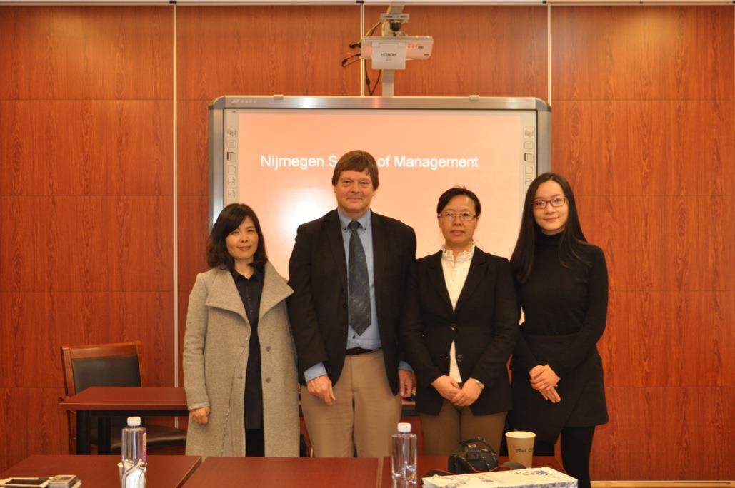 首先,吕院长代表学院对Allard C.R. van Rieli教授的到访表示热烈欢迎。Allard C.R. van Riel教授详细介绍了奈梅亨管理学院的发展历史、学生、科研情况。值得一提的是,双方在交谈中发现了两所学院的诸多共同点。奈梅亨管理学院目前有3000多名在校生,国际生比例达15%。双方的这些共同点为拓展合作领域打下了良好的基础。会议就科研合作,教师互访进行了商谈,双方表示将保持密切联系,推动合作进展。
