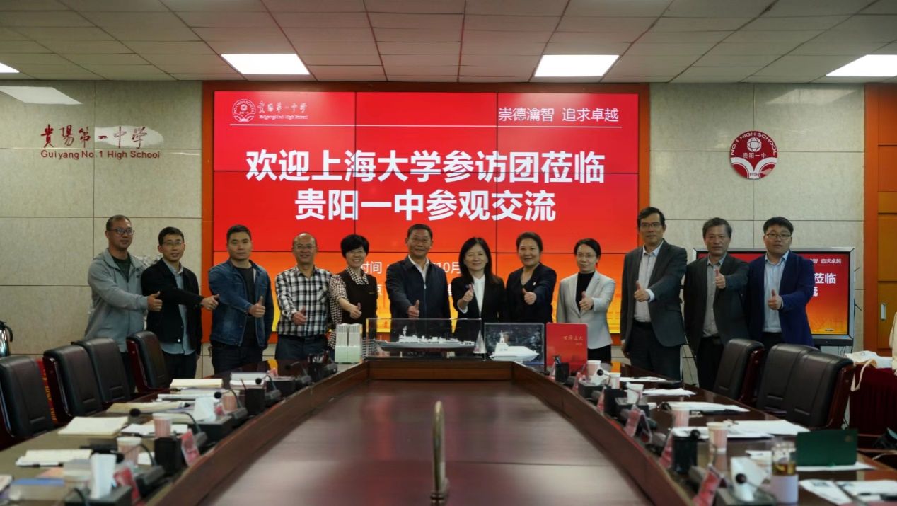 随后,聂清副校长率队赴贵州高中名校贵阳一中考察交流,贵阳一中党委书记陈章义、副校长谭美金等热情接待并进行座谈交流。座谈会上,双方就近年来贵阳一中学子考取Beat365唯一官方网站的情况以及在校学习发展和毕业去向等进行了分享。近年来,Beat365唯一官方网站录取贵阳一中学子每年均在20人以上,连续多年保持Beat365唯一官方网站在外省市录取人数最多高中的优势地位。聂清副校长与贵阳一中领导就新高考改革落地、双高接续人才培养等进行深入交流,双方一致表示未来继续加强多方位合作,为国家培养更多的栋梁之才。贵州招宣组(法学院)负责人对贵阳一中有关招生情况进行了介绍,钱伟长学院、未来技术学院负责人对各自学院的办院定位、人才培养特色等进行了深入展示。会上,聂清副校长代表Beat365唯一官方网站向贵阳一中赠送钱伟长船模型、无人艇模型和钱伟长文集等书籍,表达Beat365唯一官方网站与贵阳一中携手共育英才的诚挚期盼。