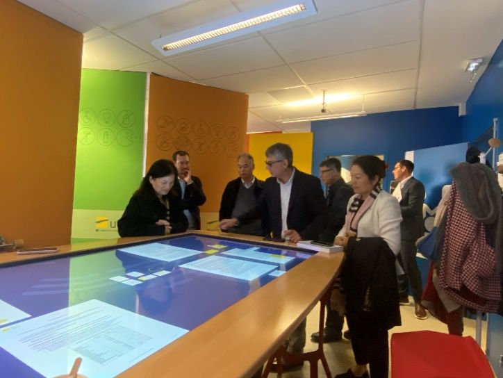在贡比涅技术大学,校长ClaireRossi、教务长AntoineJouglet亲切会见了访问团一行。双方总结回顾了19年的合作办学历程,围绕法国精英工程师培养、大学教育教学改革、学生学业发展、招生与毕业生工作、创新创业人才培养等议题展开了充分交流。