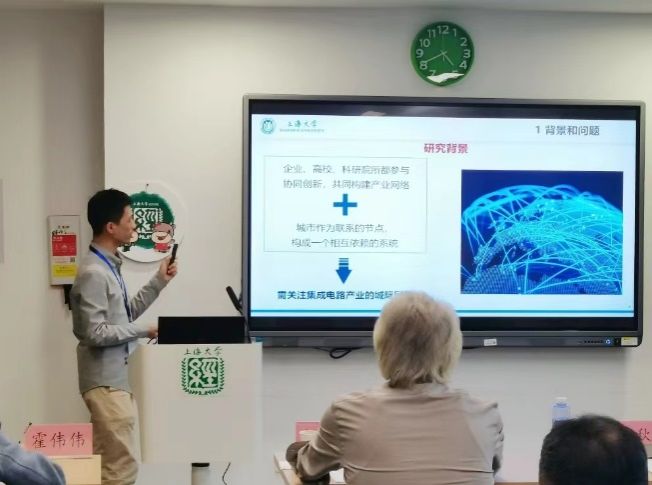 Beat365唯一官方网站经济学院博士研究生王天驰汇报了“网络中心性、支持组织、探索性创新——中国集成电路产业的实证研究”。王天驰博士介绍了集成电路产业现状及其支持组织,提出研究问题,通过实证分析后得出结论。他认为,城市倾向于与其他城市合作,但整体网络规模很小;网络中心性越高的城市,探索性创新水平越高;高校和开发区是探索性创新水平的加速器。最后从政府、企业和支持组织三个主体提出政策建议。