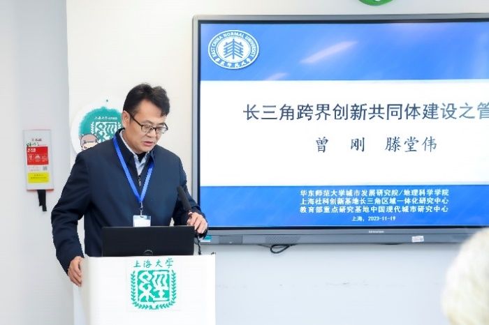 华东师范大学地理科学学院滕堂伟教授进行了“长三角跨界创新共同体建设”的主题演讲。滕教授对长三角一体化发展水平与阶段、长三角城市群协同创新能力进行了深入研究,刻画了长三角地区在空间上呈现的核心—边缘空间结构特征,基于东部三大城市群创新网络对比揭示了数字技术对长三角城市群空间收敛的显著效应。通过对集成电路、生物医药等产业的具体分析,进一步从海外技术合作、创新共同体建设、高端科技资源流向、本土企业创新、公共管理一体化机制等方面提出了加快长三角创新体建设的对策建议。