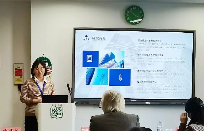 常州工学院副教授尤瑞玲对“智转数改赋能中天钢铁高质量发展研究”进行分享。她指出,钢铁行业中低端产品占比下降,面临行业转型升级拐点,绿色化发展成为发展主旋律,随着钢铁贸易摩擦不断增加,要基于安全和效率提高钢铁行业全产业链竞争力以及政策支持。通过对中天钢铁的目标定位、实施方案、智转数改成效、存在问题分析,提出钢铁产业发展的对策建议,认为要加强钢铁工业数字化标准研究,推进工业互联网发展应用,加速突破关键技术,大力引培复合型数字人才。