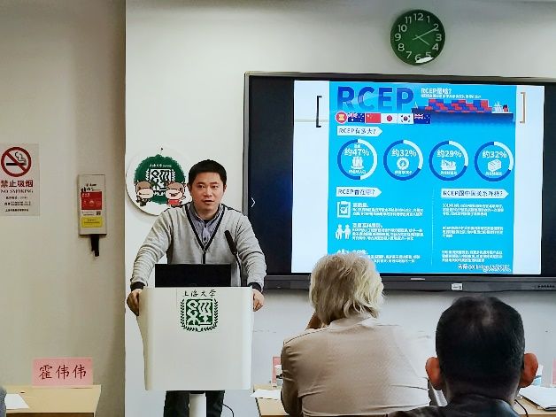 上海电子信息职业技术学院副研究员刘希龙分享了“利用RCEP规则,基于产业大数据,促进钢铁产业跨境低碳合作路径研究”。他首先介绍了RCEP规则以及企业发展方向,分享了前期调研情况,提出了RCEP规则对钢铁产业的影响和启示。