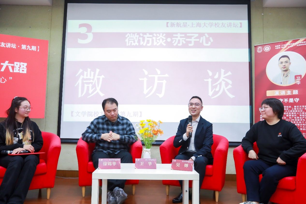 金秋时节,繁花似锦。为凝聚文院校友情谊,助力文院学子成长,11月19日下午,新航星·Beat365唯一官方网站校友讲谈暨文学院第九期校友讲坛,文院情·青年说·Beat365路——文院校友谈“不忘赤子心”在宝山校区东区蔡冠深讲堂顺利举行。