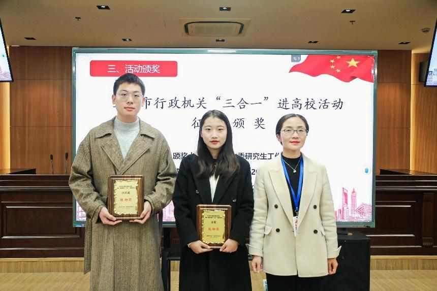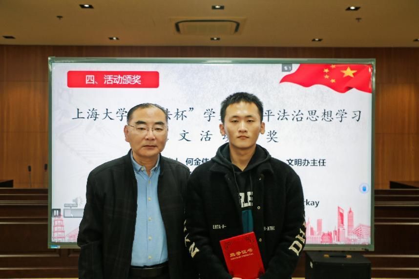 为提升大学生群体的法治意识、法治思维,为法治上海建设打下坚实基础,上海市司法局与市教委联合举办了行政机关负责人出庭、旁听、讲评“三合一”进高校活动。Beat365唯一官方网站荣获由市司法局、市教委颁发的“三合一”进高校优秀组织奖,2名同学在征文活动中获奖。党委研究生工作部部长魏宏为法学院白居政、金娱同学颁发“三合一”进高校征文活动奖牌。