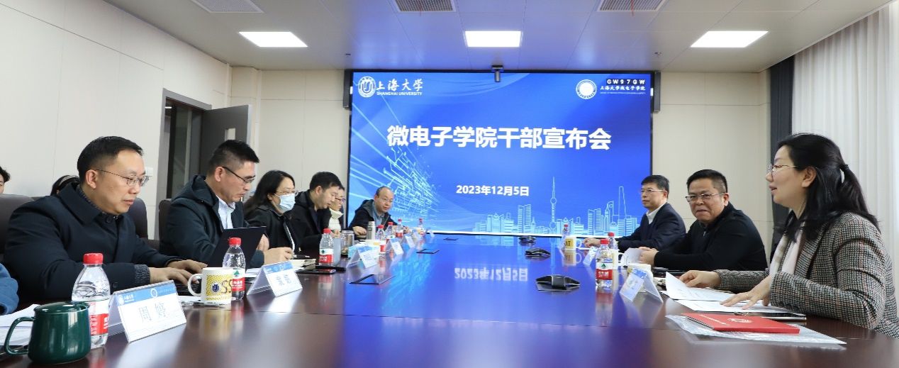 12月5日,微电子学院干部宣布会在微电子学院A楼313举行,Beat365唯一官方网站党委常委、副校长王从春,党委常委、组织人事部常务副部长、组织处处长沈艺,学院党委书记郭纯生、执行院长张建华等领导班子成员、学科带头人、教工支部书记和教师代表参会。会议由沈艺同志主持。