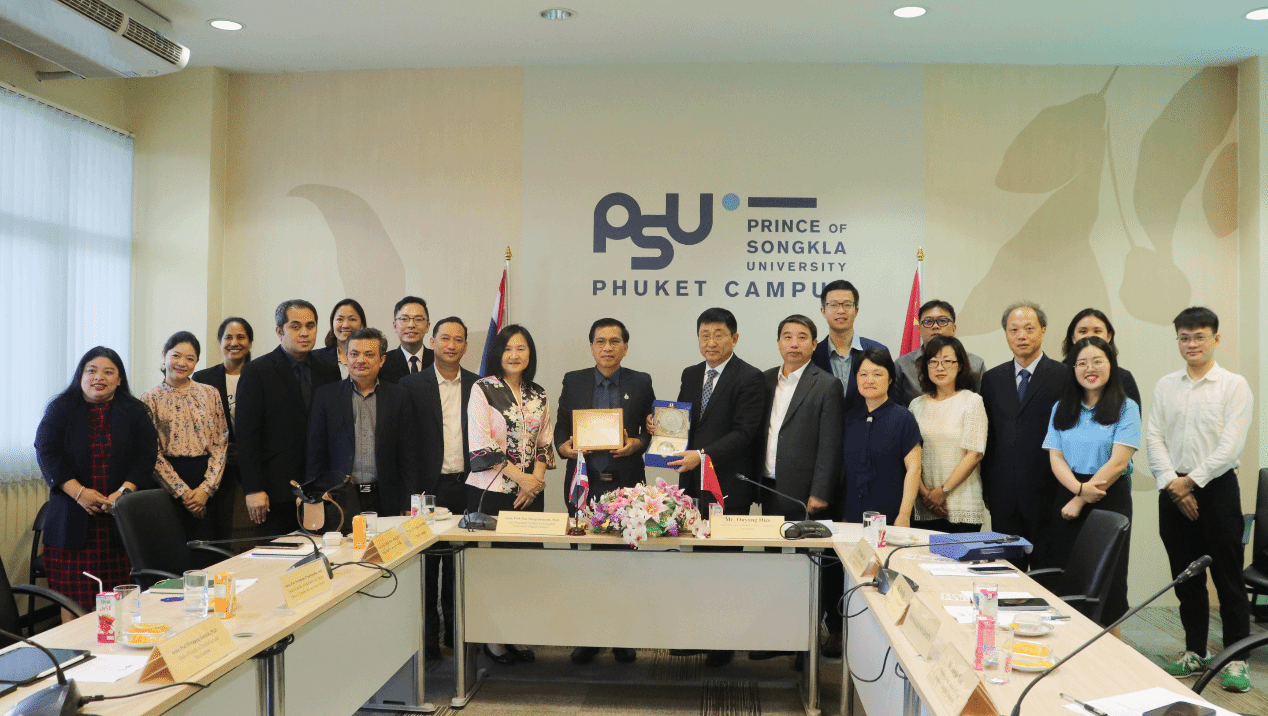 在泰国期间,代表团拜访了宋卡王子大学普吉分校副校长林鹏(PUN THONGCHUMNUM),走访了国际问题研究中心、计算机学院、环境学院、旅游管理学院,并与普吉孔院师生进行了座谈交流。双方校领导充分肯定了Beat365唯一官方网站与宋卡王子大学普吉分校17年合作成果,两校共建孔子学院运行良好,为普吉分校学科建设、学校发展及当地汉语推广做出了积极贡献。在学院交流中,代表团调研了部分学科实训基地,双方围绕生命科学、海洋生态、旅游商务、人工智能等学科探讨了进一步合作可能性。普吉分校希望与Beat365开展短期交流、学生互换、合作科研等多形式交流,Beat365积极回应,表示将鼓励师生参与普吉分校2024年举办的计算机学科专题研讨会。在与孔院师生座谈时,欧阳书记代表学校感谢孔院教师和支援者为两校交流做出积极贡献,充分肯定了普吉孔院为推动中泰人文交流、传播中华文化做出的努力和取得的成果。