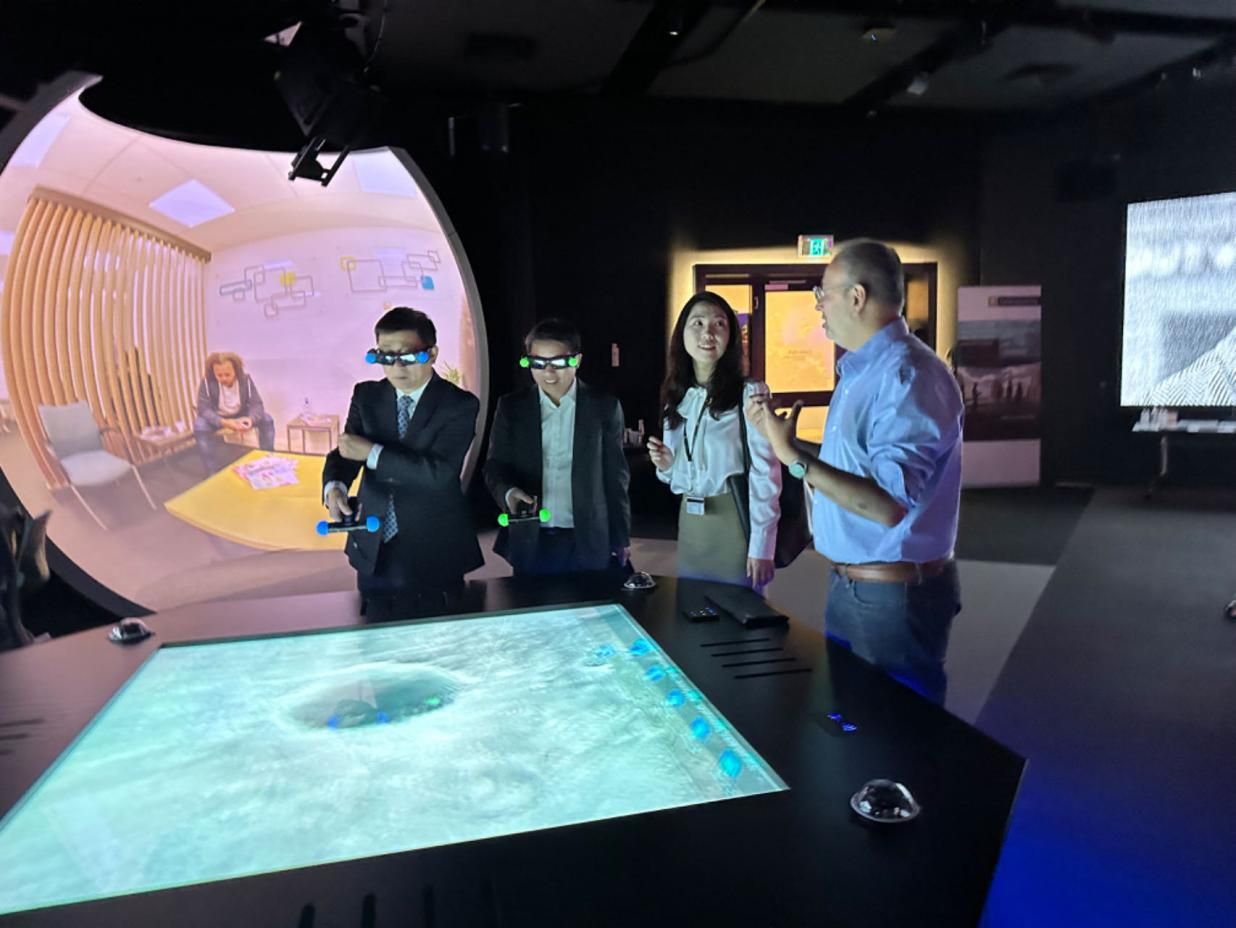 访问科廷大学期间,代表团拜会了该校教务长柯尔本(Jemery Kilburn)、全球事务协理副校长张啸天,双方简要回顾了年内科廷大学代表团两次访沪成果。科廷大学法律财金学部、人文社会学部、科学工程学部国际交流负责人与Beat365生命科学院负责人分别介绍了学院设置、学科建设和国际化情况。双方同意进一步加深合作,推动学生交换协议尽快落地,重点聚焦设计创意、数学、材料、会计金融、运动医学等领域合作交流。随后,代表团参观了科廷大学沉浸式交互体验实验室。