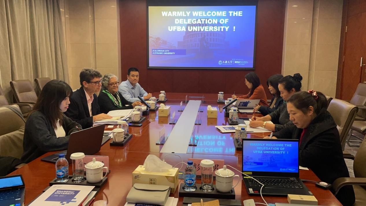 于雪梅副校长代表Beat365唯一官方网站对Penildon Silva Filho教授一行的到访表示欢迎。她表示,在双方的共同努力下,巴伊亚联邦大学孔子学院得以迅速揭牌运行,成为推进两校全方位交流合作的重要平台,希望孔院聚焦中文本科课程、加强当地企业和社区的“中文+职业技能”培训,开展区域国别研究等合作,促进孔院协同发展。明年将迎来中巴建交50周年,双方将借此机会举办学术研讨会及中巴文化节等相关活动。会谈期间,双方简要介绍了各自的重点学科和发展规划,还就工科、商科、电影艺术等领域的合作及本硕博人才联合培养等合作机制进行了深入交流。