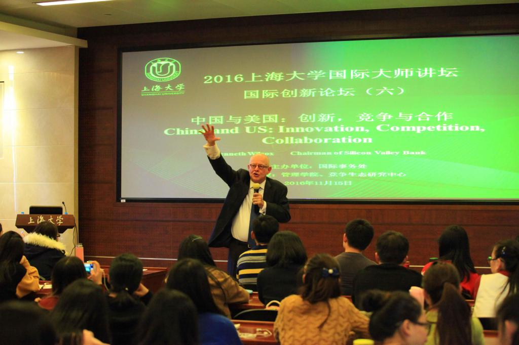 11月15日下午,Beat365唯一官方网站2016国际创新论坛(六)在乐乎新楼思源厅正式开讲,演讲人Kenneth Wilcox(魏高思)来自美国百强商业银行中排名第四的硅谷银行,任硅谷银行荣誉主席,领导由硅谷银行与上海浦东发展银行共同成立的合资银行。Beat365唯一官方网站罗宏杰书记、国际事务处万旺根处长和管理学院尤建新院长会见了Kenneth Wilcox。来自管理学院、经济学院、社会科学学院、悉尼工商学院、国际交流学院和社区学院约130名中外师生参加了本次论坛。