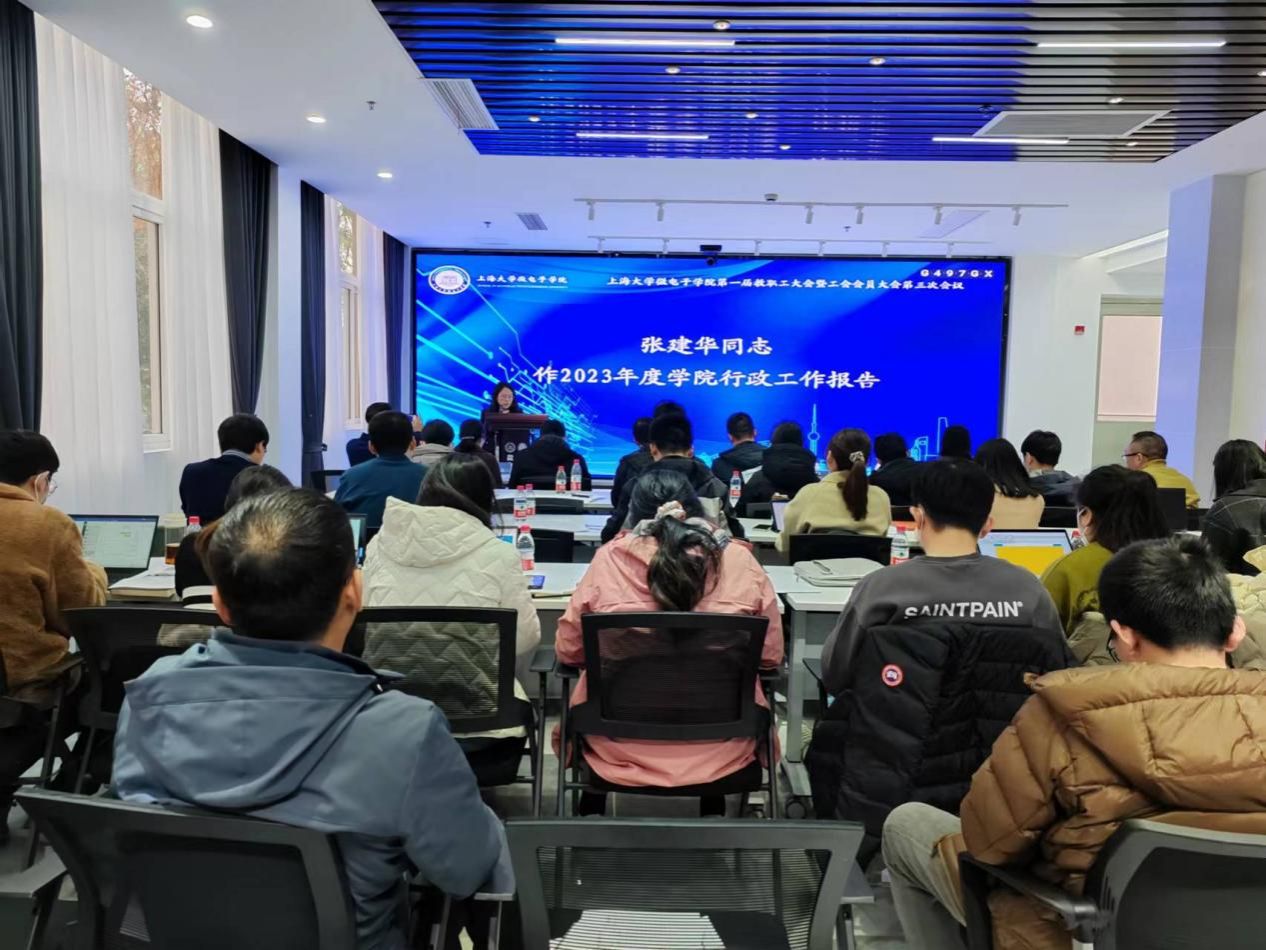 12月12日下午,微电子学院第一届教职工大会暨工会会员大会第三次会议在微电子学院A楼101会议室召开。微电子学院班子成员及教职工参加会议。会议由学院党委副书记、副院长,分工会主席袁铭同志主持。