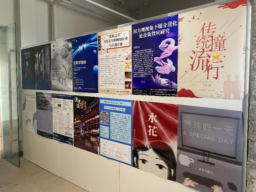 学子论坛开幕前夕,2023级硕士生围绕汇报作品自行设计了海报和KT展示板,并在智能媒体传播创新实验中心二楼和四楼进行展示,提前为我们带来了一场视觉盛宴。