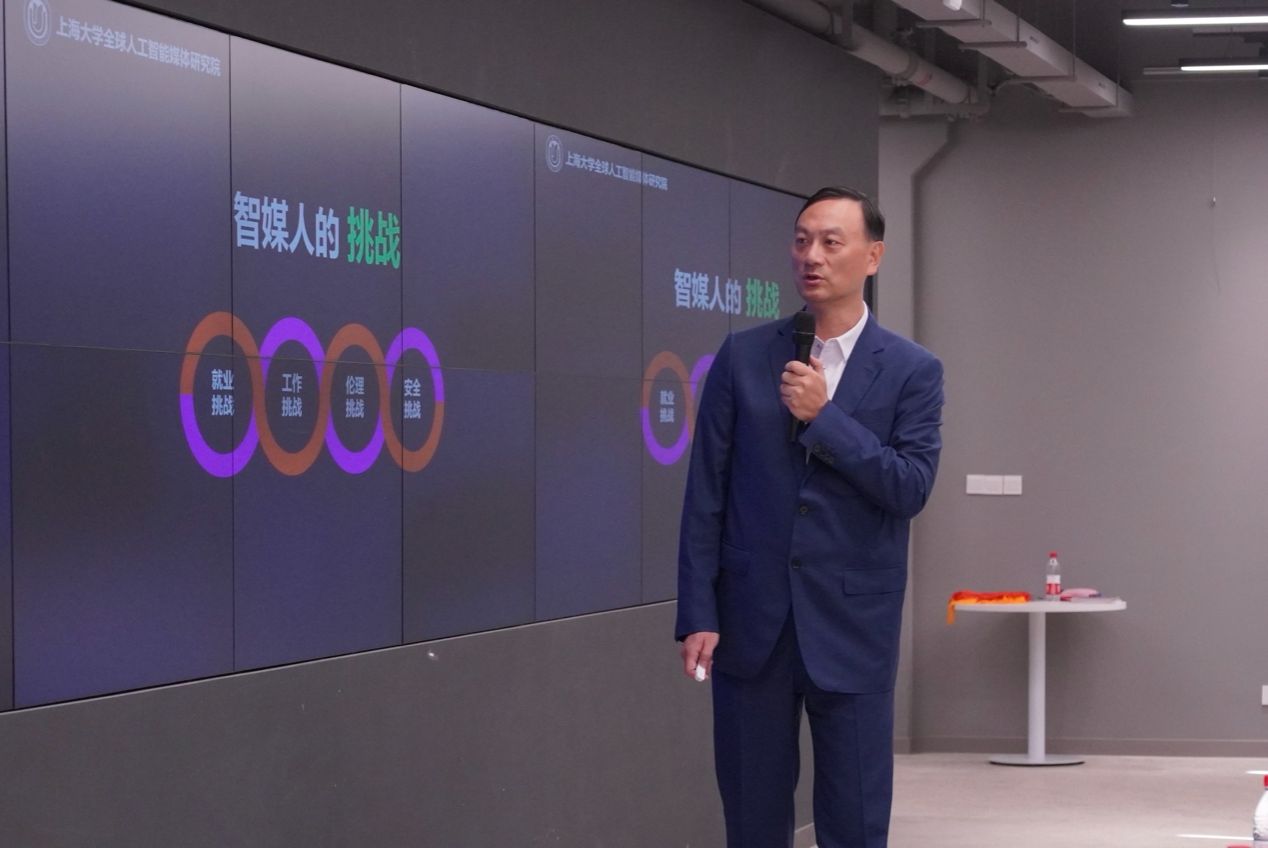 报告中,张大钟先生首先向大家讲述了文明跃升的四个阶段,指出新闻内容生产力从PGC、UGC到AIGC,将呈指数级上升,启发大家从不同的内容生产主体来认识新闻内容的生产。随后,张大钟先生从智媒人的挑战与破局两个方面进行讲解,在面对就业挑战、工作挑战、伦理挑战、安全挑战时,我们要积极寻求破局之路,通过正确认识运用大模型小助手、大网红小视频、大IP小文创、大数据小程序、大世界小故事,在算力时代学会使用人工智能进行创作。最后,张大钟先生指出,算力即权力,在确保智媒人价值观,人工智能价值观和人类整体价值观保持一致的同时,智媒人更需要学会运用算力、使用人工智能去产生新思想,创造新事物。