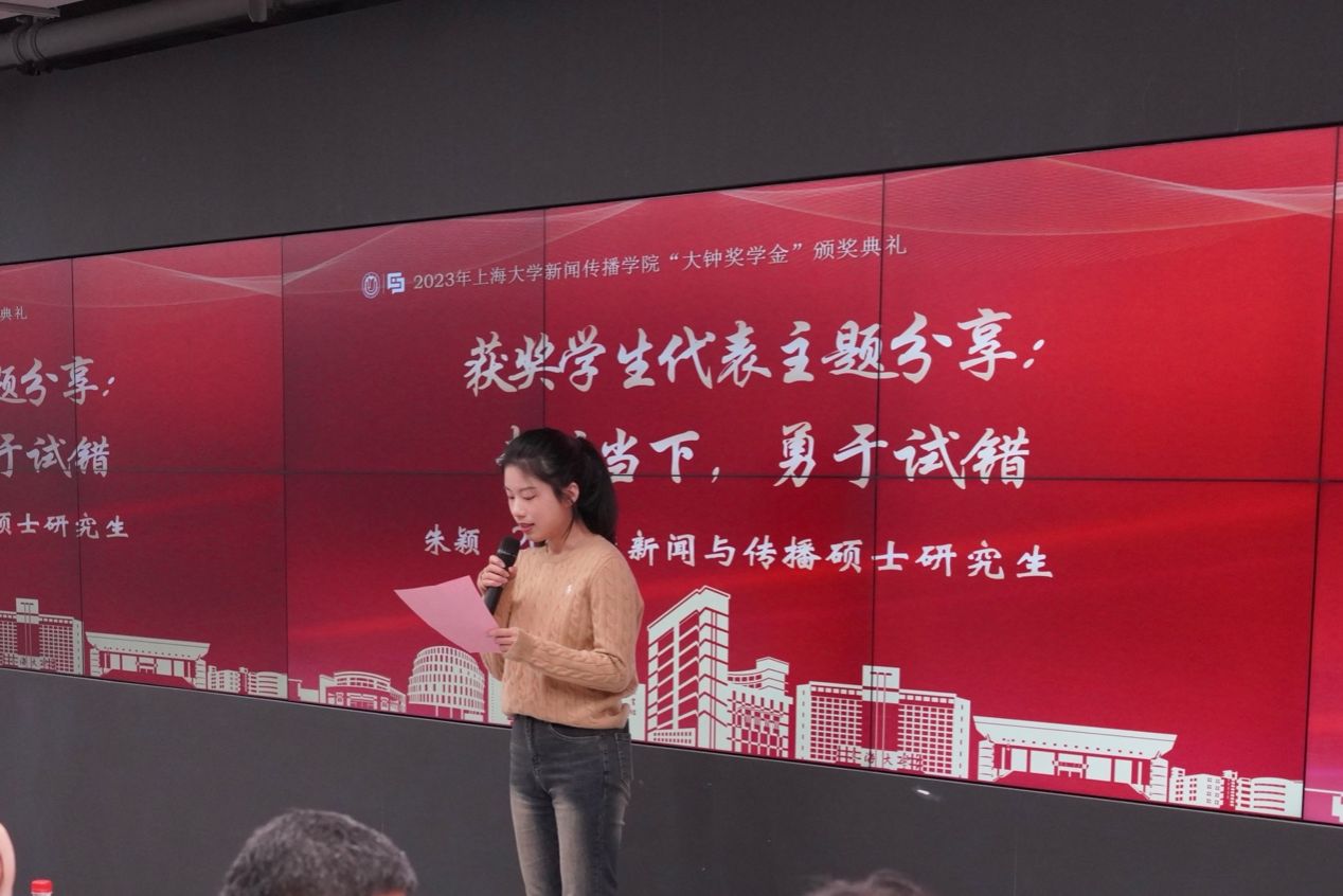 2022级新闻与传播专业硕士研究生朱颖同学则细数了自己成长路上的心路历程,向大家传递“行胜于言”的力量,在实现自己的同时,激励大家回报社会。