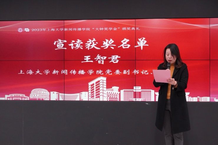本届“大钟奖”也迎来五年来最大的变化。往届“大钟领导力奖学金”在本届升级为“大钟创造力奖学金”,从领导力到创造力的变化,也体现了张大钟先生寄予新传学子的殷切期望。新闻传播学院党委副书记、副院长王智君宣读了2023年度“大钟奖”获奖名单。