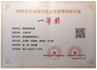 中国研究生“双碳”创新与创意大赛是一个鼓励创新和可持续发展而设立的重要平台。团队倾注了无数的汗水和努力,为了应对气候变化、减少碳排放、推动环保,提出并实施了一项“绿色”创新项目。决赛中我们与另外242支队伍相互切磋、学习,认知了不同领域学者、老师们为双碳减排所贡献的具体策略与实际应用。导师一直是我们的引路人,他的支持和指导帮助我们拨开迷雾,走向成功之路。我们深知,学校一直以来都鼓励学生追求卓越,鼓励创新思维,未来团队将继续努力,自强不息、追求创新,为创新和可持续发展事业做出更多贡献。