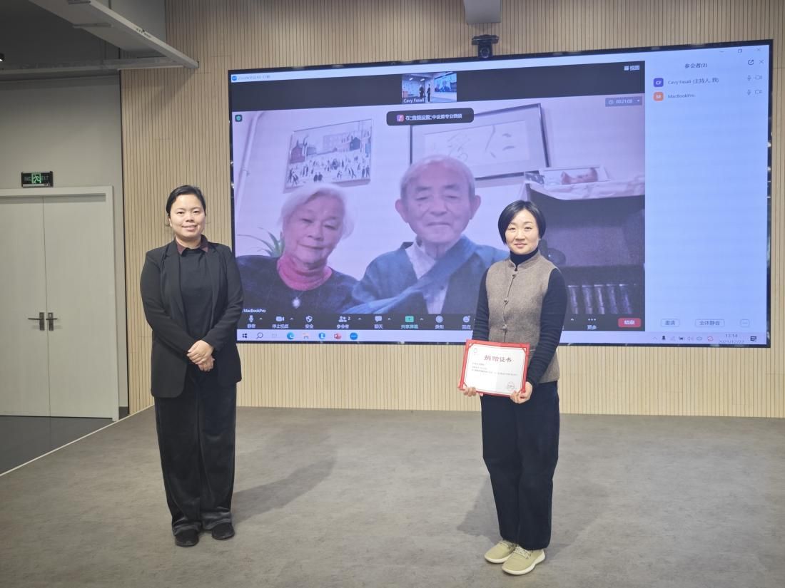 为了感谢村冈教授的慷慨捐助以及他对于中日友好关系所作出的积极贡献,文学院特别向其授予捐赠证书,由文学院党委副书记、副院长丁佳蒙颁发,历史系黄薇老师代为领取证书。