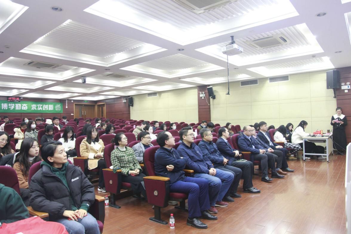 学术年会组委会主席沈瑶教授对第五届学生学术年会评审情况做了详细的介绍。参赛论文经过组委会收集、查重、初评打分推荐、修改、查重、复评打分推荐、结果汇总、评奖公示八个环节开展。每篇论文在初评、复评环节,均有三位评审团教师对其推荐、打分或排序,确保各个环节的公平、公正、公开。最终共计产生一等奖7项、二等奖9项、三等奖10项,优胜奖14项。