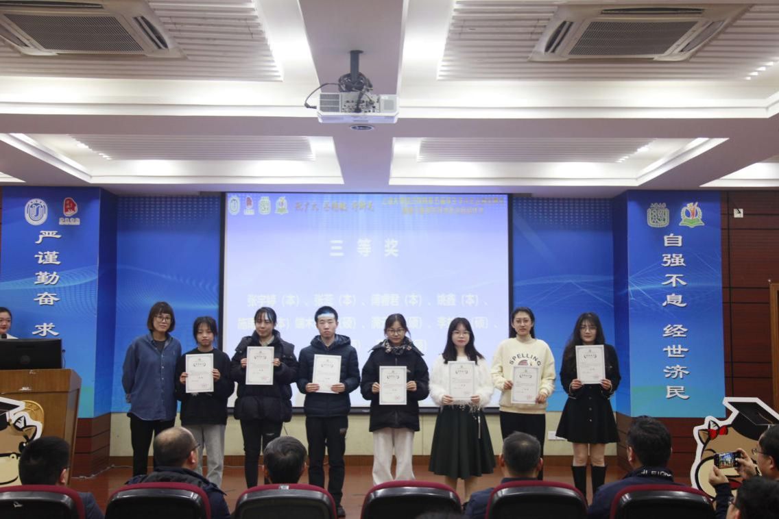 经济学院产经中心副主任谭静为荣获三等奖的同学们颁奖。
