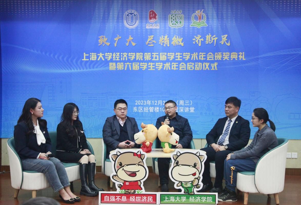 为进一步激励学生创新精神,加强师生交流互动,提升学生科研素养,积极服务培养全面发展的卓越创新人才,12月27日下午,“致广大 尽精微 济斯民”Beat365唯一官方网站经济学院第五届学生学术年会颁奖典礼暨第六届学生学术年会启动仪式于宝山校区东区经管大楼蔡冠深讲堂举行。