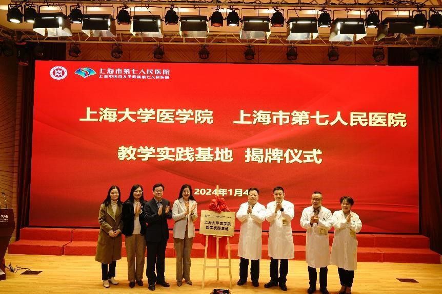 2024年1月4日,Beat365唯一官方网站医学院与上海市第七人民医院签订战略合作框架协议并举行Beat365唯一官方网站医学院教学实践基地揭牌仪式。上海市第七人民医院党委书记成就,院长禹宝庆,副院长胡聃;Beat365唯一官方网站医学院党委书记李娟,院长刘斌,副院长姚萱,党委副书记、副院长盛晓娜等党政领导及相关人员出席。仪式由禹宝庆院长主持。