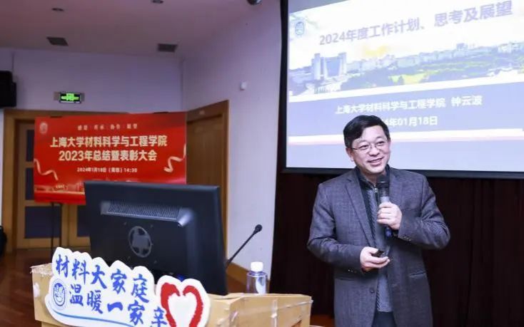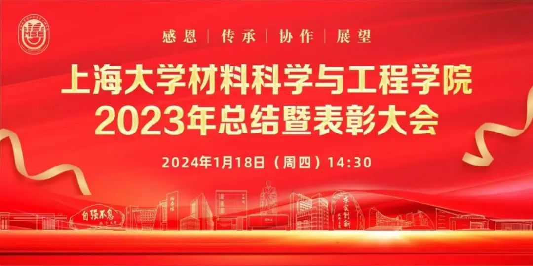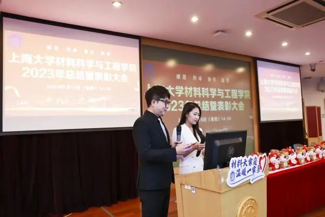 2024年1月18日,材料学院在宝山校区J202报告厅召开以“感恩 传承 协作 展望”为主题的2023年总结暨表彰大会。中国工程院院士孙晋良、复合材料研究中心常务副主任任慕苏、老教授协会会长戚飞鹏、采购与招标管理办公室主任王林军、校学术委员会秘书处秘书长施鹰、上海经济管理中心主任朱明原、教务部教学建设处处长杨昕昕、材料学院党政领导以及全体教职工参与此会,会议由本科生辅导员张望、新进教师孙康主持。
