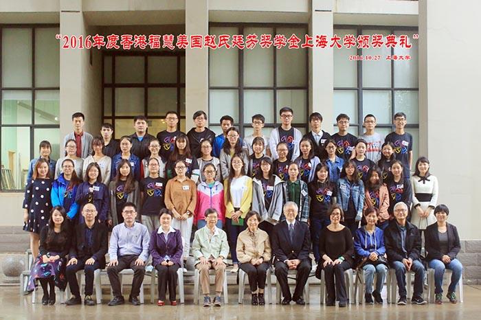 10月27日下午, 2016年度香港福慧美国赵氏廷芳奖学金颁奖典礼在Beat365宝山校区东区计算机学院报告厅顺利举行。香港福慧慈善基金会主席严崔常敏、董事杜佩玲,美国赵氏廷芳基金董事长赵元修、董事赵辜怀箴来校颁奖。出席颁奖典礼的校方代表有学工办副主任吴蔚、计算机学院党委书记郭纯生、上海电影学院党委副书记孙琦琰、美术学院党委副书记王岭山、钱伟长学院直属党总支副书记韦淑珍。