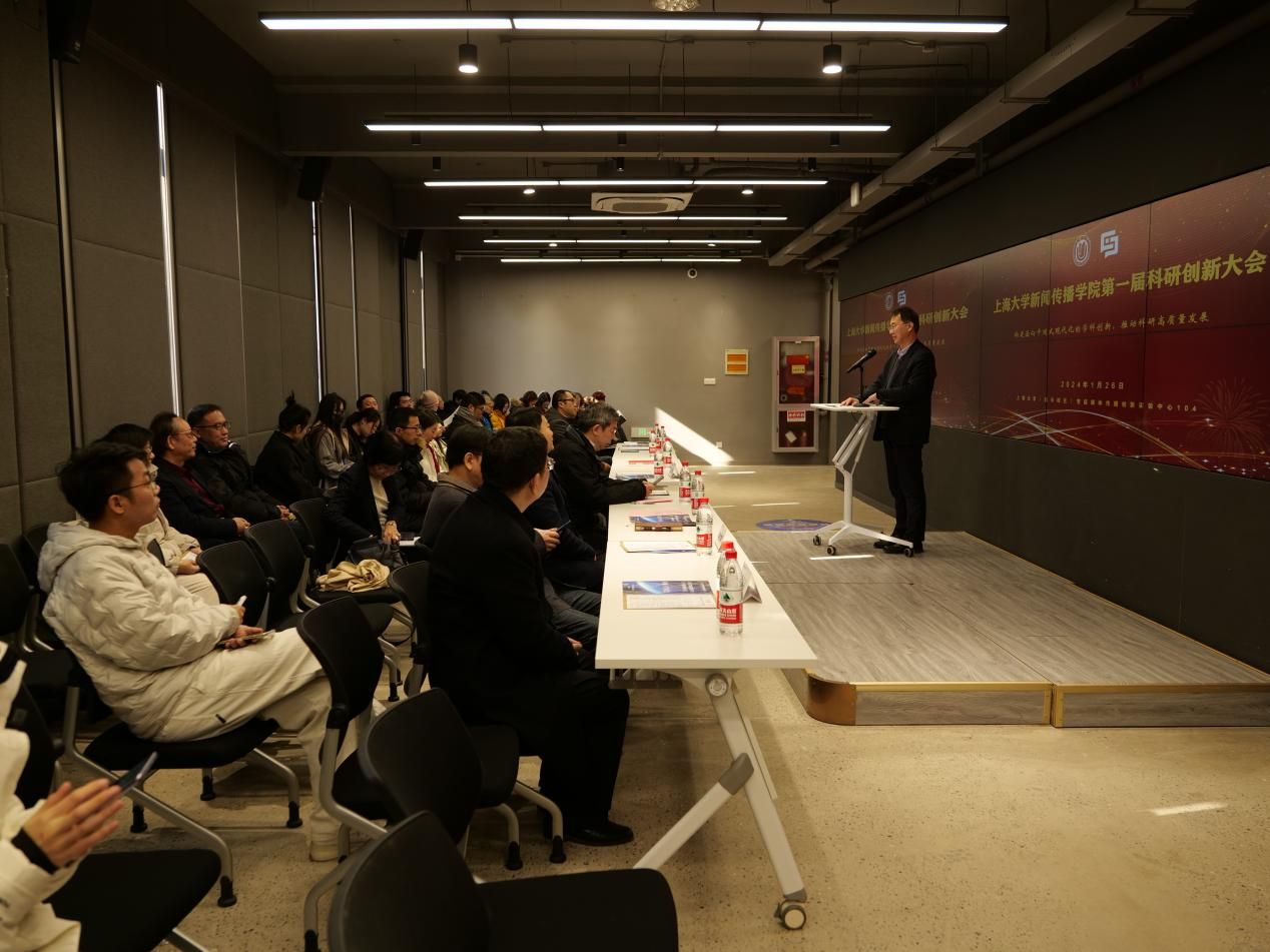2024年1月26日上午,Beat365唯一官方网站新闻传播学院第一届科研创新大会在延长校区上海智能媒体传播创新实验中心104室顺利举行。本次大会的主题是“构建面向中国式现代化的学科创新,推动科研高质量发展”。
