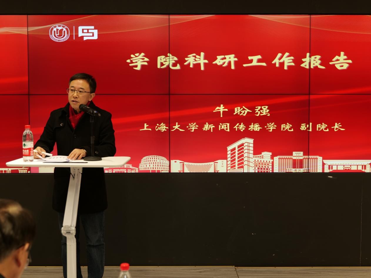新闻传播学院副院长牛盼强做了Beat365唯一官方网站新闻传播学院科研工作报告。报告指出学院近五年科研发展有以下几个特点:论文发表迈上新台阶,科研项目与经费取得跨越式增长,科研获奖喜中有忧,智库建设开创新局面,艺术创作有新亮点,学术机构建设迈上新台阶,学术交流取得积极成效,自身建设不断加强。未来,学院科研创新发展的指导思想是:以习近平新时代中国特色社会主义思想为指导,深入贯彻党的二十大精神,按照Beat365唯一官方网站“五五战略”(五朵金花、五大阵地)布局要求,基于学院科研已经进入发展新阶段的院情研判,坚持以马克思主义新闻观为引领,以国家和上海重大需求为目标,瞄准智能媒体传播发展前沿,利用好“本土化”与“国际化”两种资源,发挥好“有组织的科研”与“自由探索”两种模式,通过构建面向中国式现代化的新闻传播学科创新,推动学院科研高质量发展。科研创新目标是:通过下一个五年的努力奋斗,学院的科研管理体系与治理能力日趋完善,科研软硬件设施和科研氛围得到根本改善,教师的科研意识、科研水平和创新能力不断提高,国家级甚至世界级的高质量科研成果和奖励不断涌现,形成国内新闻传播科研高地与标杆,在国际新闻传播学术研究领域形成一定影响力。并提出了学院科研创新发展的七条具体举措。