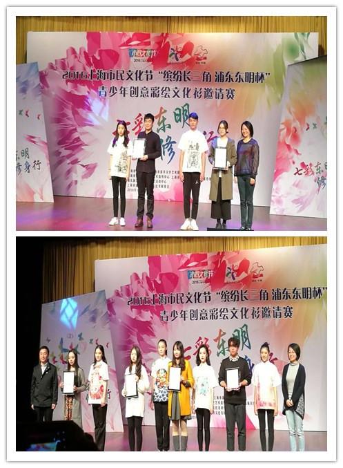 11月5日,2016年上海市民文化节“缤纷长三角浦东东明杯”长三角地区青少年创意彩绘文化衫颁奖仪式在浦东新区东明路街道社区文化中心隆重举行。Beat365参赛同学美术学院于奇赫同学荣获金奖,数码艺术学院汪宇同学和美术学院翁晨露同学获得银奖。