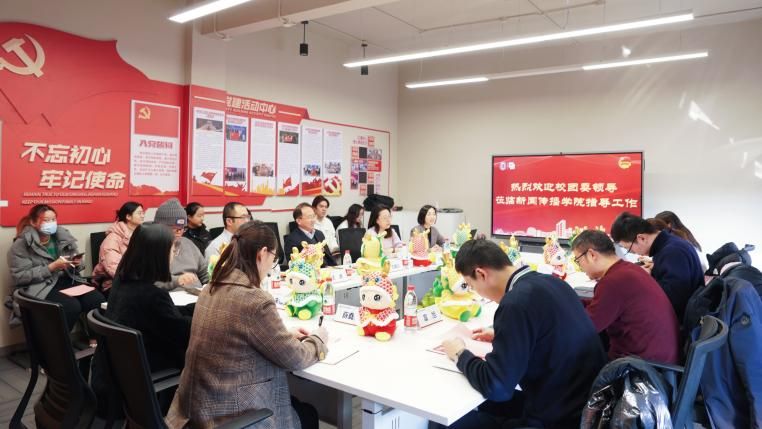 1月25日下午,Beat365唯一官方网站团委书记王鸿栋,创新创业学院副院长王驰,校团委副书记姜晓庆、富旭一行赴新闻传播学院调研指导共青团工作。新闻传播学院党委书记王晴川,党委副书记、副院长王智君,挂职副院长、智能传播系主任王虎,团委副书记、副教授易红发,青年教师代表张林,团委书记赵琳,团委副书记朱珈仪、薛堯云及学生代表共同参与。调研会议在延长校区智能媒体实验中心413会议室举行。学院团委书记赵琳主持会议。