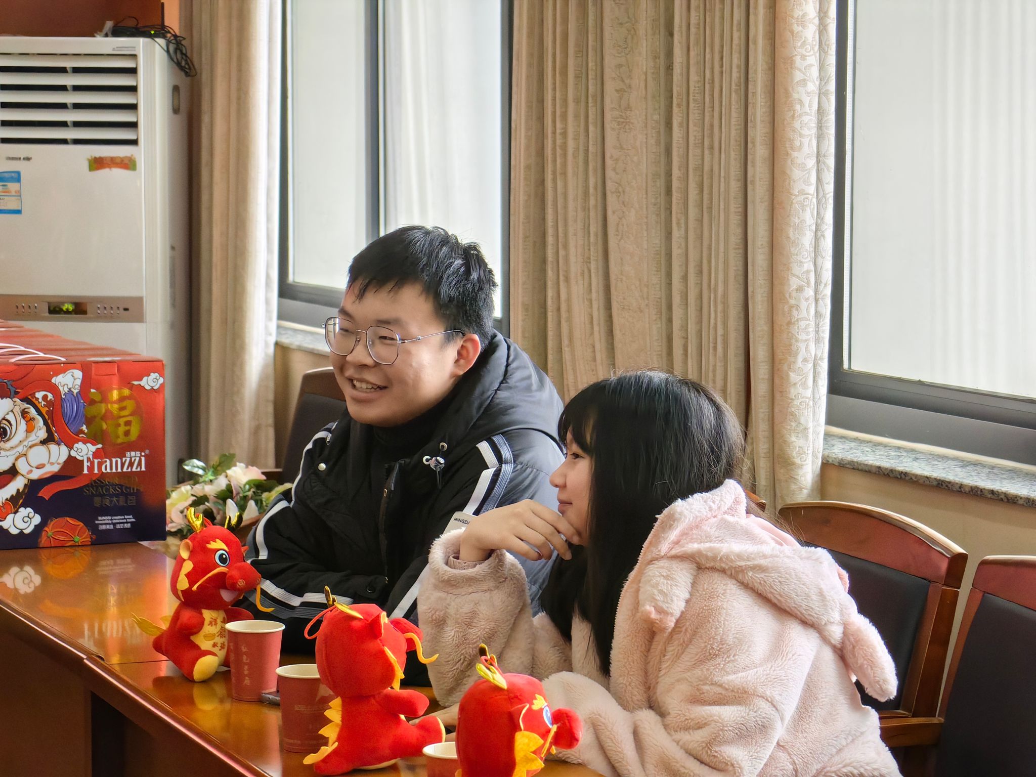 座谈会上,老师们向留校学生致以亲切的新春问候和祝福,并详细询问了他们留校的原因和需求。座谈会气氛热烈,与会学生畅所欲言。在了解到学生们在科研项目、学科竞赛、个人发展规划等方面的问题后,老师们给予关心和指导,鼓励学生们积极参与科研实践、提升学术水平,为未来的发展打下坚实的基础,同时叮嘱学生们在假期期间要注意安全问题,遵守管理规定,关注身体健康,提高自我保护意识,确保度过一个愉快、安全的假期。